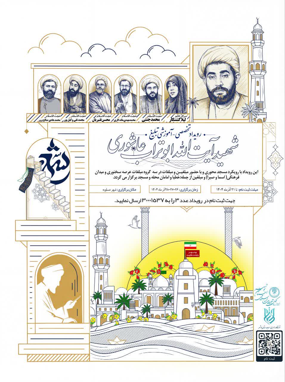 به گزارش روابط عمومی سازمان تبلیغات اسلامی، عسلویه، قرار است میزبان جمعی از مبلغان و مبلغات استان بوشهر باشد تا در یک رویداد سهروزه تخصصی، آموزشی و تبلیغی با نام شهید عاشوری، نفس تازهای به میدان تبلیغ دینی استان ببخشند؛ رویدادی که با محور مسجد و با هدف تقویت جبهه فرهنگی و جهاد تبیین، از ۲۶ تا ۲۸ آذر ۱۴۰۴ در این شهر برگزار میشود.